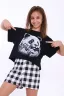 Комфортная пижама для девочки с оригинальным принтом. Пижама детская состоит из футболки со светящимся в темноте принтом и шорт. Дизайн ткани позволяет использовать пижаму не только для сна, но и как костюм для дома. Модель пижамы не сковывает движения ребенка во время сна. Покрой футболки свободный, шорты классические без карманов. Пижама выполнена из 100% гипоаллергенного хлопка, что позволяет коже ребенка дышать во время сна.