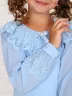 Блузка для девочек с длинным рукавом. Данная модель станет основой школьного или праздничного образа. Элегантное мягкое кружево на горловине можно красиво разложить на сарафан или пиджак, что создаст нарядный look. Оригинальная модель добавит романтизма в образ и подчеркнет индивидуальность, можно сочетать с юбкой, сарафаном и брюками. Шифоновые рукава на манжете, по низу настрочено кружево. На спинке вырез в виде капли с застежкой на петлю и пуговицу. Блузка сшита из качественного трикотажа - кулирка с лайкрой, используемый материал не теряет форму после многократных стирок, мягкий и приятный к телу, устойчив к износу. Для сохранения первоначальных свойств изделия, важно соблюдать рекомендации по уходу.