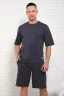 Костюм мужской состоит; футболки с короткими рукавами прямого кроя и шорты с боковыми карманами