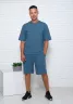 Костюм мужской из футера 2-х нитки: шорты на эластичном комфортном поясе, с боковыми карманами и футболка прямого кроя, со слегка спущенным плечом, с принтом по низу полочки. Данный трикотаж имеет низкую сминаемость и презентабельный вид.