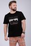 Пижама мужская: футболка прямого кроя с короткими рукавами с принтом на полочке, брюки прямые, с карманами в боковых швах.