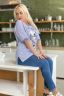 Комплект состоит из туники и брюк. Туника прямого силуэта, с округлой горловиной, с удлиненной спинкой, с разрезами в нижней части боковых швов. Рукав короткий, обработанный эластичным манжетом. Горловина обработана эластичной обтачкой. Брюки свободные в верхней части и зауженные к низу, длинные, с карманами, со складками спереди по шву притачивания пояса, на эластичном поясе.