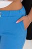Купила себе джоггеры голубого цвета, очень понравились! Удобные, мягкие, прекрасно сидят на фигуре. Пояс регулируемый, длина как раз для меня - 3/4. Единственный минус - немного растягиваются при носке.