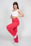 Брюки женские прямого силуэта. Пояс отрезной, выполнен из основного полотна, с эластичной тесьмой внутри. К верхнему срезу поясу притачена резинка, но выглядывает из пояса. На резинке декоративная нашивка. Надпись переводится как "Модный стиль". Модель рассчитана на рост 164-170см.