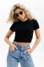 Укороченный футболка женская из кашкорсе. Популярная модель среди покупательниц. Отличная ткань, качественный пошив. Идеально подойдет для прогулок и занятий спортом. Футболка прекрасно смотрится в летние дни, под пиджаком или кардиганом в прохладные осенние вечера и зимние дни.