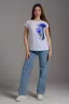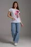 Футболка полуприлегающего силуэта, средней длины, с округлой горловиной. Рукав цельнокроеный, короткий.
