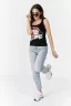 Майка-борцовка прилегающего силуэта, средней длины, с округлой горловиной. Горловина и проймы майки обработаны бейкой из основного полотна.