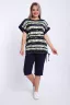 Костюм женский футболка и бриджи .Футболка свободного кроя, плечо спущенное на манжете. Низ футболки собирается на шнурок .Бриджи на резинке, без карманов.