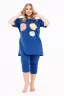 Хлопковый костюм с бриджами от бренда MODALINA состоит из: туники полуприлегающего силуэта с коротким рукавом и прорезными карманами, длина футболки - ниже бедер, горловина округлой формы, с ненавязчивым принтом. Бриджи классической длины с прорезными карманами, с широкой резинкой, которая не передавливает животик.