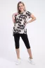 Женский костюм из футболки и бриджей — отличный выбор для дачного сезона и прогулок. Футболка в бежевом или оливковом цвете с набивным принтом в виде крупных букв придаёт образу современный и стильный вид. Бриджи черного цвета из 100% хлопка обеспечивают комфорт и свободу движения, что особенно важно для активного отдыха на свежем воздухе или дома.
