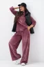 Костюм женский двойка штаны + кофта выполнен из плотной и мягкой ткани велюр. Брюки с карманами и поясом на резинке, у кофты округлый воротник и рукав 3/4 на манжете. Комплект прямого свободного силуэта, Идеального подходит для повседневной носки.