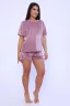 Костюм женский велюровый с шортами. Футболка с коротким рукавом, горловина обработана обтачкой, шорты на поясе. Костюм мягкий, приятный к телу, комфортный, идеально подойдет как для дома, так и для прогулок.