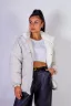 Рост модели на фото: 175 см, размер: 46-48. На ней представлена куртка бежевый цвет в 48-50 размере, в цветах серый и черный 50-52 размер.