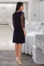 Элегантное платье полуприлегающего силуэта до колена, рукав из фатина в горошек, длина 3/4.