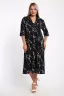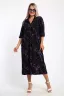 Платье женское свободного покроя. Воротник отложной рубашечного типа, образует V-образный вырез. Платье с карманами в боковых швах. Длина платья чуть выше щиколотки. Рукав 3/4 с манжетой, поднят патой.