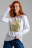Нежнейший белоснежный трикотаж. Рукав длиннее запястья(как на фото). И сам лонгслив удлинён. Принт, хотя и золотой, но не навязчивый. Краска не линяет и не трескается при стирке. Красиво смотрится "на выпуск" с брюками. Вещь достойная.