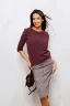 Одной из особенностей этого джемпера с укороченным рукавом является его удлиненная спинка, она визуально удлиняет силуэт и акцентирует внимание на Вашей фигуре. Рукава 3/4, декорированные подворотами, придают кофте легкость и свободу движений.