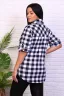Туника клетка выполнена из ткани кулирки хлопок 100%. На полочке планка с пуговицами, карман, воротник рубашечный со стойкой, рукава на манжете с патой. Внизу легкое закругление, по бокам разрезы, на спинке кокетка. Туника подойдет для отдыха, дома и прогулок.