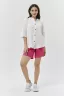 Женская туника-рубашка на пуговицах, с отложным воротником, свободная, с удлиненной спинкой и фигурной линией низа. Спинка со складкой с декоративной шнуровкой. Рукав короткий. Можно составить комплект с шортами 8259 или брюками 8266