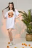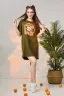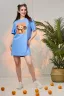 Туника-футболка в стиле "оверсайз". Прямая, свободная, длиной выше колена, с округлой горловиной. Рукав короткий. Горловина обработана обтачкой из основного полотна.